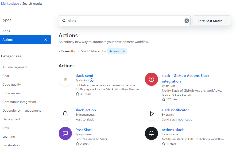 slack만 쳐도 225개의 검색 결과가 나옵니다. 그 중 슬랙에서 지원하는 slack-send를 사용하기로 했습니다.
