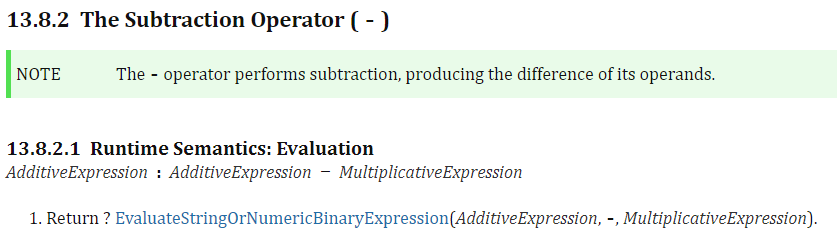 + 연산이 아니므로 2번 과정은 수행하지 않아 제외했습니다. + 연산과 다른 점은 primitive 타입 변환이나 문자열 변환 과정을 거치지 않습니다. 바로 숫자형으로 변환합니다. 그 후 T::subtract 연산을 수행하고, 반환합니다.