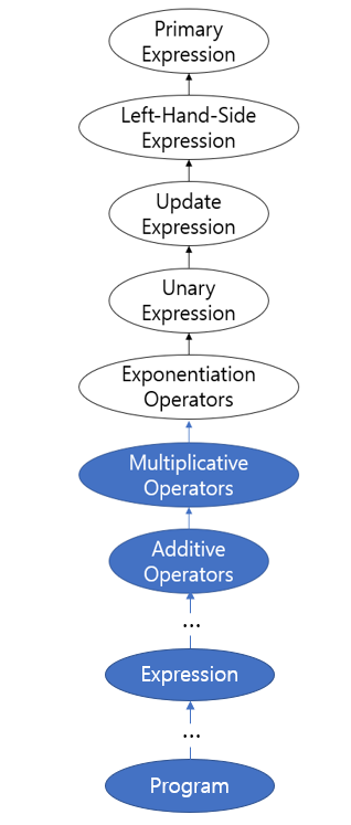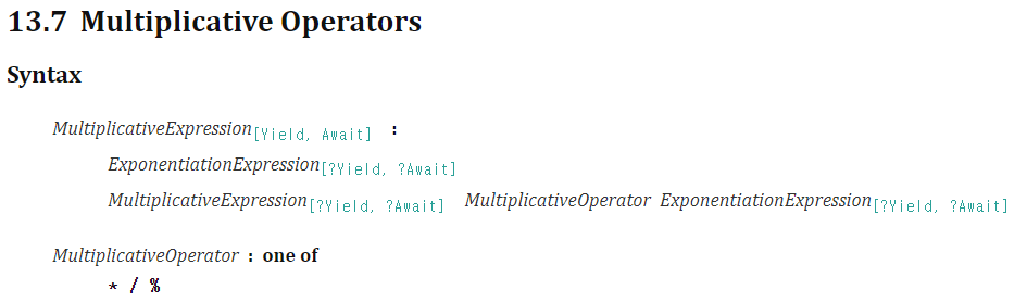 ECMA 사양에서 AdditiveExpression과 MultiplicativeExpression 등의 용어가 있었습니다. 대충 더하는 표현식이랑 곱하는 표현식을 나타내는 것 같은데, 갑자기 곱하는 표현식이 왜 나올까요?