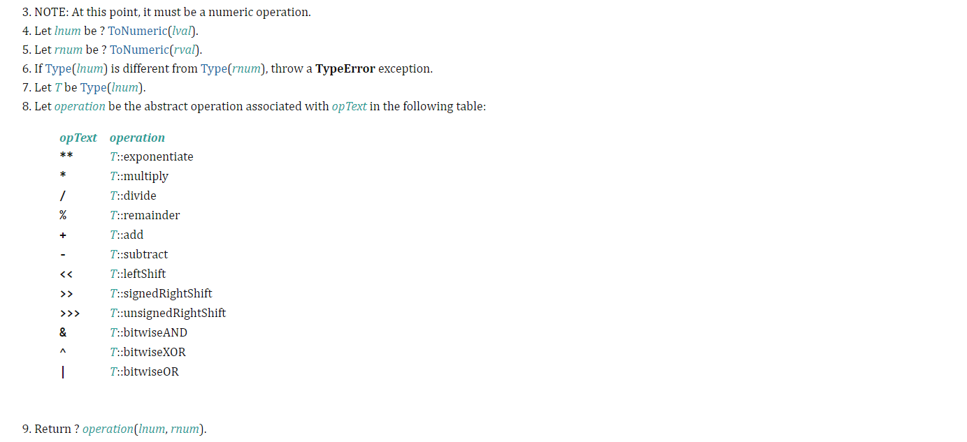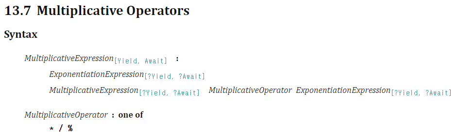 *와 /, % 연산의 ECMA 사양은 다음과 같습니다.